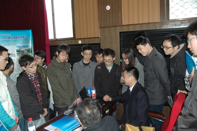 洽谈会召开前夕,北化旗下各单位在我校举办了专场招聘会。招聘会吸引了众多应届毕业生,大家踊跃递交简历,与用人单位沟通咨询,气氛热烈。部分低年级学生也来到了招聘会现场,就专业发展前景与企业负责人进行了交流,有效地解决了低年级学生的发展困惑。