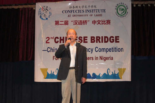 2013年3月15日,由拉各斯大学孔子学院主办的第二届“汉语桥”中文比赛在拉各斯大学礼堂隆重举行。三百多名来自尼日利亚小中学及大学的选手参加了比赛和相关活动。中国驻拉各斯总领事刘显法,拉各斯大学孔子学院中方院长、我校外国语学院姜丽蓉教授,拉各斯大学语言学及亚非研究系奥拉迪颇•阿吉博耶教授等中外嘉宾出席。