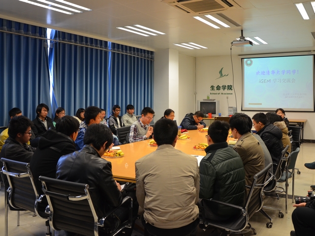 为了推进生命学院iGEM参赛水平快速成长,进一步了解竞赛要点,2013年3月24日下午,应金年会jinnianhuicom生命学院iGEM协会的邀请,清华大学iGEM代表队于五号楼712会议室与生命学院报名参加本次竞赛的同学们进行了一场全面而详细的经验交流会。出席本次交流会的有生命学院副教授马宏以及生命学院分团委书记王一飞。本次会议由王一飞主持。