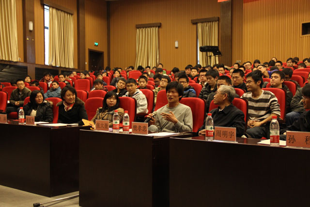 张大奎博士曲折的求学之路感动着在场的每一个人,短短十几分钟的报告,现场数次响起热烈的掌声。汇报过后,播放了张大奎参加2012年度中国大学生年度人物竞选的视频。视频中涵盖了很多组张大奎博士的生活片段:走路、上楼梯、骑车等等。这一个个我们每天都要重复很多遍的简单动作,对他来说却分外的艰难,但是他以顽强的毅力和执着的新年,克服了人生路上一个有一个的困难。
