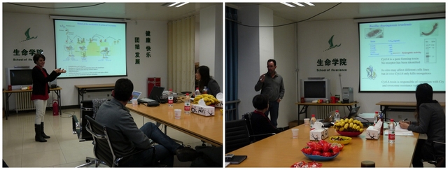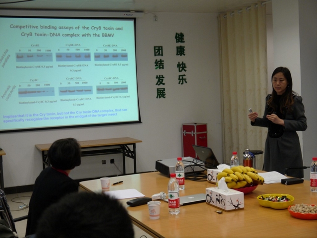 2013年3月27日,应生命学院郭淑元老师邀请,墨西哥国立自治大学生物技术研究所Alejandra Bravo教授和Mario Soberón教授为北理工师生带来了题为“Mode of action of Cry toxins and synergism between Cry and Cyt proteins”的报告。这次学术报告会由郭淑元老师主持,生命学院教师张建丽教授、周晓宏博士等及部分研究生参加了报告会。