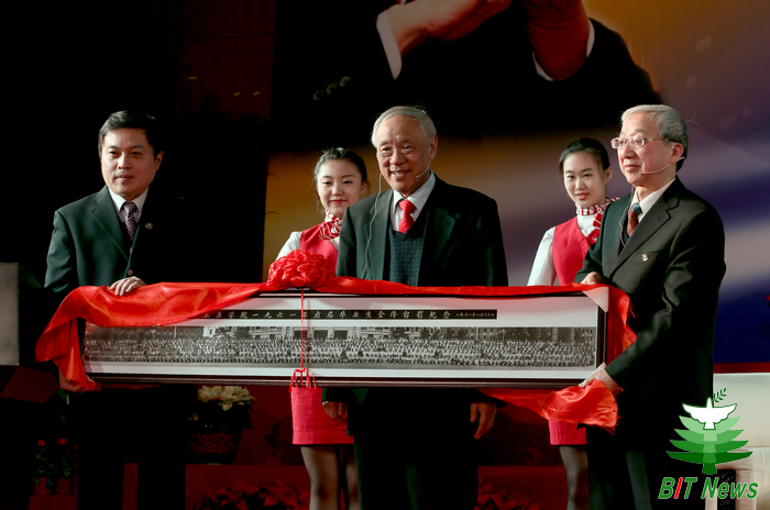 另外一份“重量级”礼物,是北京工业学院1961届全体毕业生主楼前合影,该图片一直珍藏于我校档案馆。接过珍贵的母校礼物,小谟学长表达了对学校衷心的感谢。