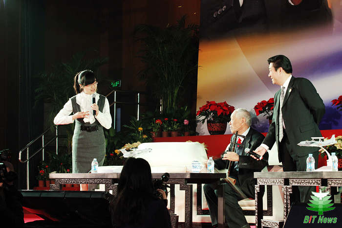 在忆苦思甜一番后,小谟院士与甘仞初教授开始畅聊学生时代的趣事。甘老师说,小谟院士学习努力,性格也分外活泼,参加了很多社团,比如京剧团,摩托车队。小谟院士经常在宿舍拉胡琴,宿舍里其他15个人也跟着接受“音乐的熏陶”,他主唱青衣,喜欢梅派,他参加京剧团一段时间后就成了台柱子,把京剧团发展成为北京高校里影响力较大的社团,参加的摩托车队也获得过北京高校比赛的第一名,小谟院士告诫学生,要德智体全面发展,不要死读书。王院士谈笑风生,思维敏捷,亲切幽默的话语让全场气氛十分热烈,与会师生无不为学长的人格魅力所倾倒。小谟学长更是在全场观众热烈的掌声中,操起胡琴,与我校本科生,演艺了一曲苏三起解的经典唱段,赢得全场经久不息的掌声。
