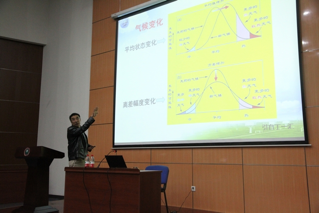 吴兑教授首先详细介绍了气候变暖的特征及成因,并由有关“雾”和“霾”的历史入手简单介绍了二者的成因、区别和对人类的影响。随后吴教授重点讲述了PM2.5的含义以及各国家、地区的PM2.5年均值限值,并通过图片及图表向大家展示个国家、地区的雾霾天气及变化特征。