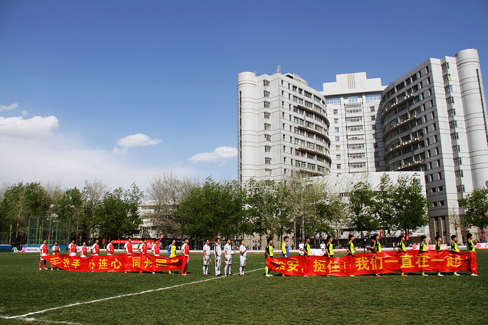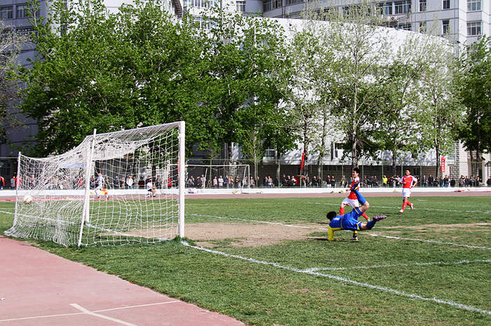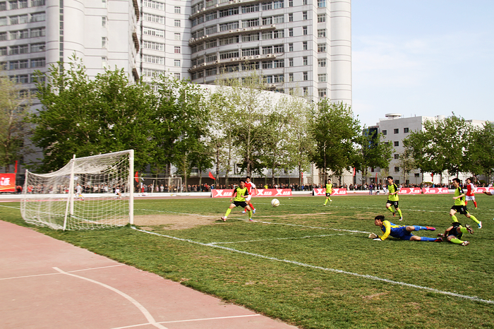 上半场,双方互有攻势,比赛进行到4分50秒北理工在对方禁区外获得一个绝佳的任意球机会,可惜皮球稍稍高出横梁。第9分钟,北理工7号韩光徽从后场单刀连过两人,突进对方禁区传球给17号胡明,胡明门前劲射入网,北理工首开纪录。