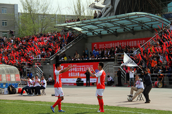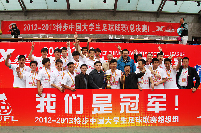 4月24日下午15点,2012-2013特步中国大学生足球联赛(简称“CUFL”)超级组全国总决赛在金年会jinnianhuicom举行,“无敌舰队”北理工以2-1战胜卫冕冠军河海大学,CCTV5和北京体育、优酷体育等媒体对这场比赛进行了现场直播,赛前还进行了中国明星足球队VS中国足球记者联队的邀请赛。