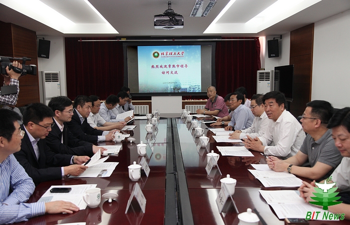 5月7日上午,常熟市市委书记惠建林、副市长陈惠良、王奇峰率领市委办公室、市委组织部、经济技术开发区、市科技局、市人社局等单位负责人来到北理工进行访问。党委书记郭大成、副校长杨树兴会见了惠建林书记一行,学校办公室主任郝志强、资产经营公司党委书记戴斌、科技园公司总经理和培仁、科研院科技合作部部长王伟、党委组织部副部长李德煌、雷达技术研究所副所长曾涛、国家阻燃材料工程技术研究中心主任杨荣杰、常熟研究院副院长王海等出席会议。