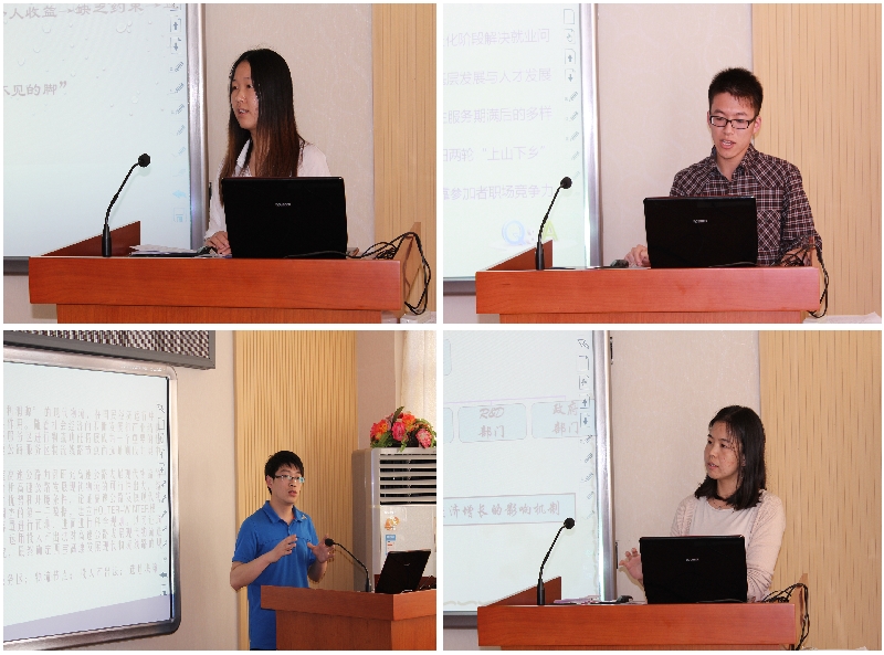 经济系学术论坛主要分为学生上台展示、评委提问和打分三个环节,经济系主任钟惠波老师,经济系教师马秋君老师、刘建军老师担任了论坛评委,共有9位研究生同学上台进行了论文展示。同学们的报告主要涉及了经济领域的热点问题,如人民币汇率、居民消费水平、城镇化等,每个同学通过10至15分钟的阐述,充分表达了自我观点和学术态度。经济系老师在仔细聆听的同时对同学们的报告进行了点评,在肯定内容的基础上提出了一些实际的建议。