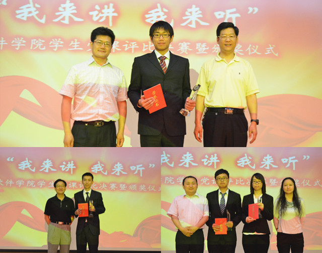 软件学院党委为加强学生党支部建设,增强学生党员、入党积极分子和青年团员的理论学习实效,创新党课培训形式,提高党员骨干与入党积极分子培养质量,开展了“我来讲,我来听”学生党课评比大赛。将“我来讲,我来听”学生党课评比大赛打造为全院青年学生思想学习的红色阵地,充分发挥党支部的战斗堡垒作用和党员骨干的先锋模范作用,推动学生党课、入党积极分子培养的改革,加强青年学生党性教育。第二届“我来讲,我来听”学生党课评比大赛在第一届学生党课评比大赛成功举办的基础上进行了创新和发展,各学生党支部成立“学生党课讲师团”,积极吸纳入党积极分子以主人翁的身份参与到党课当中来,各年级学生分别结合当前的热点理论问题,围绕“中国梦”以及十八大报告提出的“三观”、“三热爱”、“三个自信”等主题进行党课演讲。经过初赛和复赛的层层选拔,最终有四个党支部的代表队入围今天的决赛。