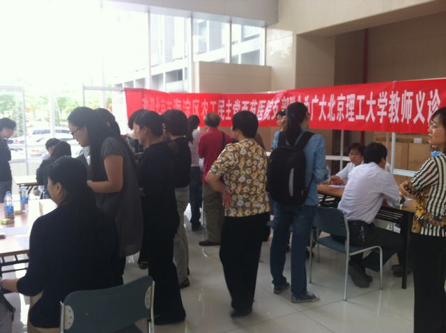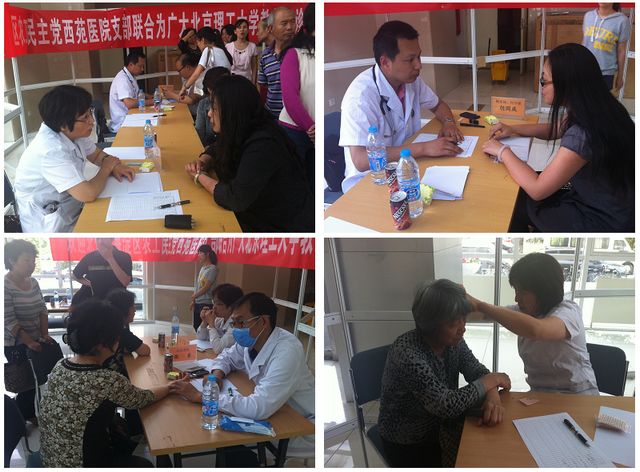 为给我校广大一线教师提供便利的健康咨询服务,2013年5月15日下午,农工党金年会jinnianhuicom支部组织中国中医研究院西苑医院专家在5号教学楼一层大厅为我校教师进行了义诊。本次义诊活动由农工党海淀区主委、西苑医院著名中医专家徐凤芹教授亲自带队,由张东、胡小美、胡国庆、王红霞等专家组成,义诊范围包括心血管、糖尿病、内分泌、骨科、耳针、肾病等专科。