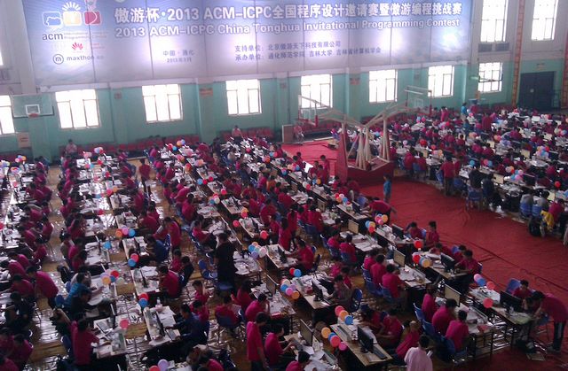 2013年中国大陆区ACM-ICPC地区邀请赛于5月份全面开战,南京邀请赛于5月19日,通化邀请赛及长沙邀请赛于5月26日在三地的三所高校分别举行。我校由基础教育学院牵头组织,在计算机学院、软件学院的大力支持下,派出由本科四个年级同学组成的六支队伍参赛,与来自全国百余所高校的三百多支参赛队进行角逐。