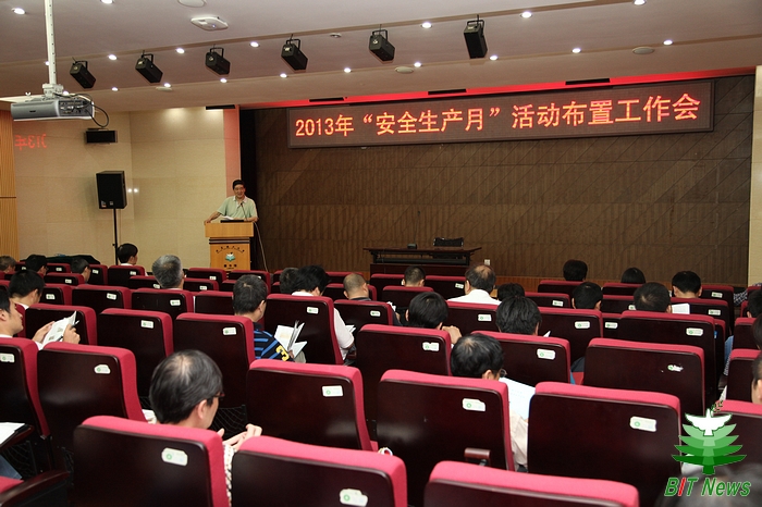 5月29日上午,学校在中关村校区图书馆一层报告厅召开了2013年“安全生产月”活动布置工作会。赵显利副校长出席了会议,学校办公室、保卫处、实验室与设备管理处、宣传部、学生工作处、研究生工作部、工会、团委、科学技术研究院、火炸药研究院、国有资产管理处、后勤集团、居民管理委员会、资产经营公司、网络信息服务中心、良乡校区管理处、发展规划处、基建处、图书馆、校医院及各学院分管安全生产工作的院领导参加了会议。会议由赵显利副校长主持。