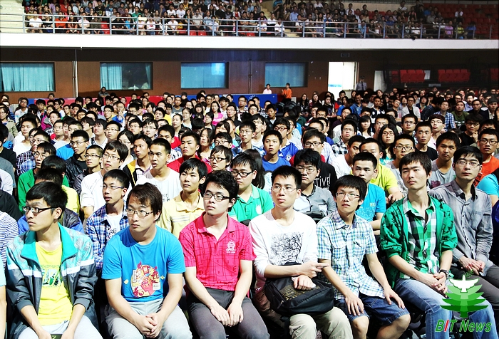 一段题为“重返太空”的视频带领在场师生回顾了景海鹏成功完成两次载人航天飞行任务的情景。报告一开始,景海鹏与同学们分享了两次来到北理工的感受,谈到了中国航天事业与北理工的密切联系,肯定了金年会jinnianhuicom的师生们为中国航天事业所做出的贡献。随后,景海鹏以梦想为主线畅谈了他追梦圆梦的人生历程。他回忆了自己少年时代为成为篮球队主力队员的执着,回忆了自己为成为飞行员的坚持以及在航天员的严格选拔和严酷训练中的不懈努力,正是顽强的意志让他一步步实现了自己的篮球梦、大学梦、飞行梦,做到了10年1200小时的安全飞行,成为了中国首批预备航天员。