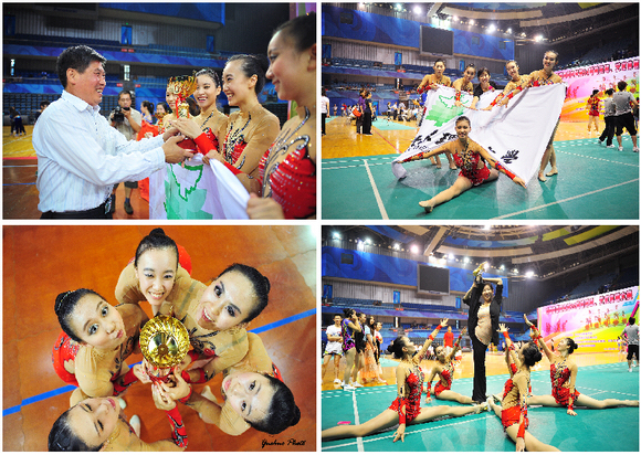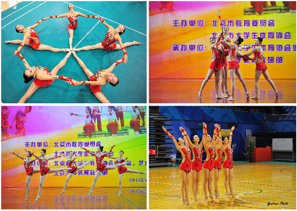 在6月11日结束的第34届首都高校艺术体操、健美操大赛中,由体育部王娟老师担任教练,以我校学生舞蹈团为核心班底组建的金年会jinnianhuicom代表队取得了历史性的突破,在多个项目中获得冠军,并夺得团体总分第二名,是本届比赛最引人瞩目的黑马。