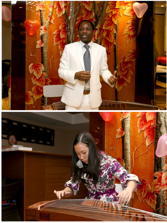 在颁奖典礼上,赵长禄副校长与在座的老师和同学们一起回顾了比赛历程,观看了闯入复赛的四位选手的表演视频。获得“汉语之星”称号的查尔斯同学为大家现场表演了单口相声,复赛选手之一来自蒙古的阿尼达同学表演了古筝弹奏,精彩的表演赢得了阵阵掌声。