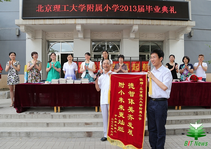 特别是学生家长代表,一位已经退休的顾校长,不仅为学校献上一面锦旗,更是现场自编自唱了一首歌曲《回忆》,以此表达对学校的感谢和对学生成长的祝福。王越人校长对全体毕业生寄予新的希望并祝愿学生们筑梦未来,扬帆起航,将自己美丽的梦想融入中国梦,为民族的复兴的伟大事业贡献力量!
