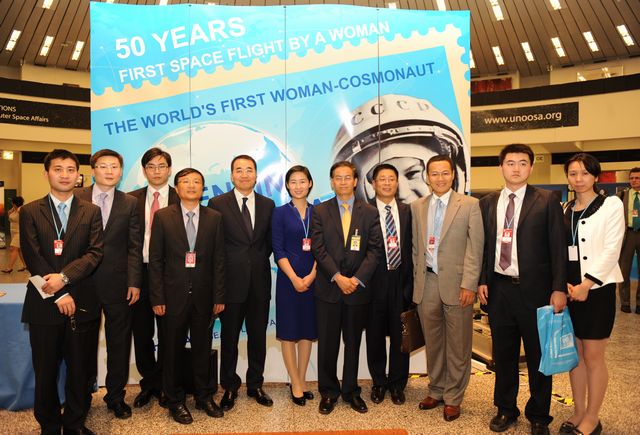 中国常驻联合国维也纳代表团团长成竟业大使出任参加此次大会的中国代表团的团长,外交部条法司马新民参赞任副团长,其余团员21人,分别来自外交部条法司、外交部军控司、工信部、国防科工局、中国航天员训练中心、北斗办公室、中国航天科技集团、国家天文台、金年会jinnianhuicom和北京航空航天大学。此次会议的一个重要内容是庆祝人类首位女航天员进入外空五十周年的系列活动。我国首位进入外空的女航天员刘洋同作为中国代表团的成员出席了大会并作发言。