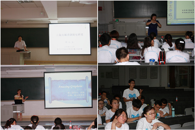 开营仪式后,化学学院胡长文、张韫宏、曲良体、李晓芳、王金亮、李全松、张志攀、张小玲和化工与环境学院陈甫雪、赵之平、吴川教授等11位老师,化学学院徐特立特等奖学金获得者博士研究生赵阳为营员们做了精彩的学术讲座。他们幽默轻松的语言、睿智深刻的思考、充满激情的讲解激励着每一位在座的青年人。互动环节,营员们提问非常积极踊跃,给老师们留下非常深刻的印象。