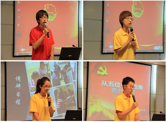 王豪同学和刘丽君老师分别作为学生代表和带队教师代表发言,分享了干训中的收获与体会。他们均表示通过本次干部培训提升了自己的理论水平和工作能力,对今后的工作产生了有效推动。为进一步提高学生理论联系实际的能力,本次干训增加了理论学习环节,组织学员们围绕“矛盾论”、“论认识和实践的关系”、“论中国梦”、“论青年”四单元开展学习讨论,从而提高学员理论水平,培养学员发现问题、分析问题、解决问题的能力。在干训社会实践中,各小组结合“坚定信仰,共筑中国梦”的主题,结合实际运用理论知识对当前北戴河旅游等问题进行系统分析并给出相应对策。结业典礼上,六个小组依次进行了干训期间理论学习和社会实践的成果展示,现场掌声不断。