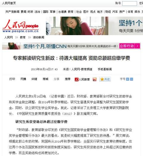 【人民网】北理工专家解读研究生新政:待遇大幅提高 资助总额超应缴学费