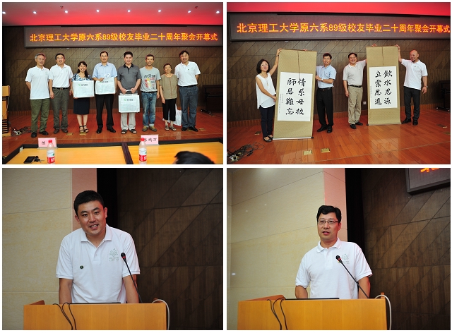 为报答学院和老师们的培养之恩,同学代表向老师们赠送了精心准备的按摩仪,向材料学院、化工学院赠送了同学代表亲笔题写的“情系母校 师恩难忘”、“饮水思源 立业思进”字幅。田炜同学代表组委会介绍了聚会筹备情况,张建军同学代表返校校友做了发言。