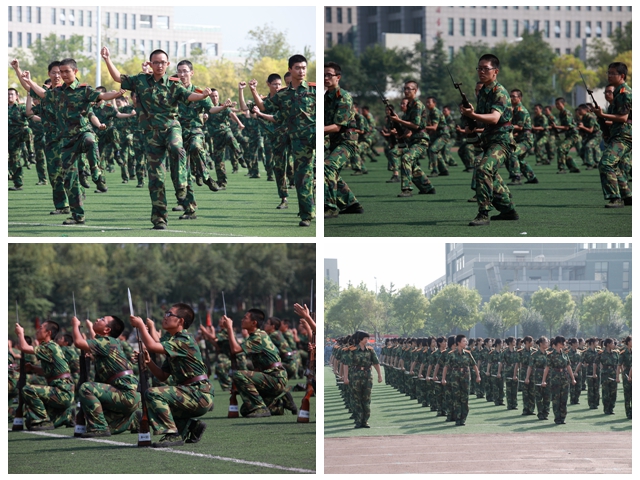 军事科目表演中,由军训旅八个营组成的四个表演方阵,分别进行了匕首操、军体拳、刺杀操和综合格斗术等科目的表演。各表演方阵整齐划一,出招迅速有力,动作标准到位,赢得了主席台领导及嘉宾的阵阵掌声。