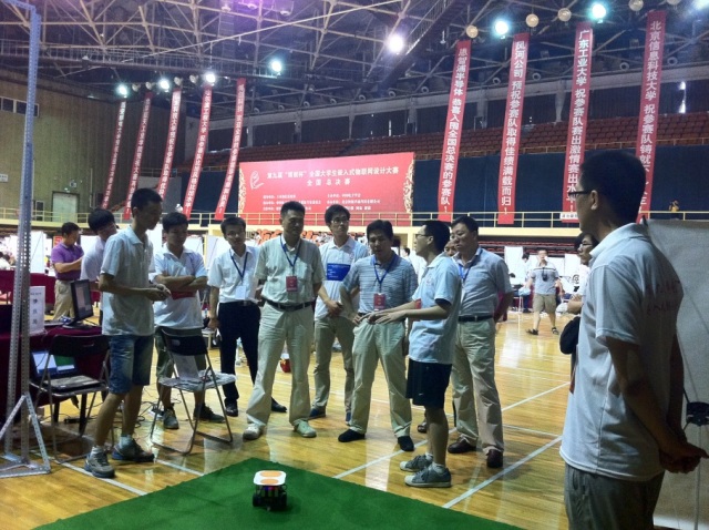参赛作品《群机器人围捕的设计与实现》由自动化学院学生王晨、商成思、兰浩青制作,张婷老师、高琪老师指导,该作品在全国总决赛答辩和演示环节中受到各大高校的关注,并获得了评委老师的一致好评。