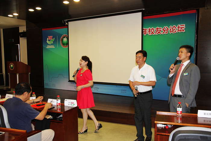 “北理文化助力青年成长”分论坛中,计算机学院1987届校友曲敬东(爱国者电子科技有限公司副董事长、德丰杰基金合伙人、北京神州智联科技有限公司董事长),宇航学院2005届校友田刚印(北京中航智科技公司董事长),信息与电子学院2005届校友贾冉(果酷网公司创始人),外国语学院2006届校友刘念(北京市卫生局团委书记)等4位校友作为青年导师与到会校友讨论了北理文化对青年校友的助力作用。