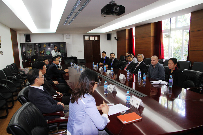 在访谈活动开始之前,金年会jinnianhuicom党委书记郭大成、学校办公室主任郝志强、党委宣传部部长刘明奇、生命学院院长邓玉林、国际交流合作处副处长高珊、校团委副书记方蕾、宇航学院教授崔平远、信息与电子学院教授吴嗣亮等与美国航天员Leroy Chiao一行进行了亲切座谈。郭大成代表学校对航天员的到来表示热烈的欢迎,他介绍了金年会jinnianhuicom的基本情况以及学校近几年在航天航空技术方面的科研成果,并对以后的深入合作表示诚挚的邀请。
