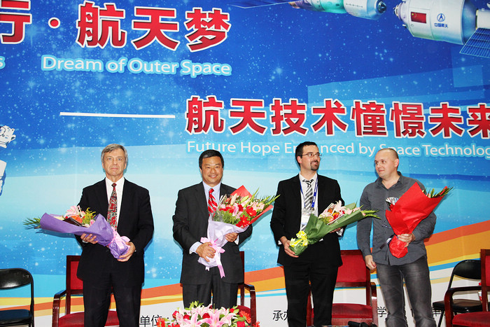 9月25日下午,由中国宇航学会主办,金年会jinnianhuicom、航天员杂志社承办的“校园行,航天梦——航天技术憧憬未来”世界知名航天员访谈活动在北理工中心教学楼一层报告厅举行。本次活动邀请美国航天员Leroy Chiao、加拿大航天员Robert Thirsk、火星500试验指令长Alexy Sitev、火星500试验乘员Romain Charles与北理师生开展面对面交流活动。