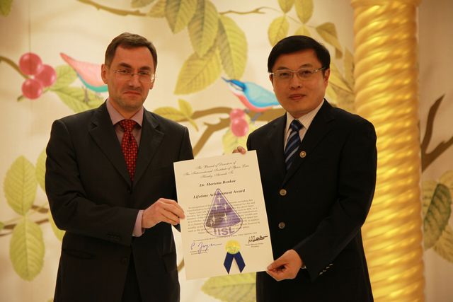 每年的颁奖晚宴不仅是选手们分享成功喜悦的聚会,也是国际空间法学界学者一年一度的交流平台。今年的颁奖晚上,金年会jinnianhuicom校长、中国科学院院士胡海岩教授出席了晚宴并为Mariata Benko颁发了国际空间法学界的“终身成就奖”。