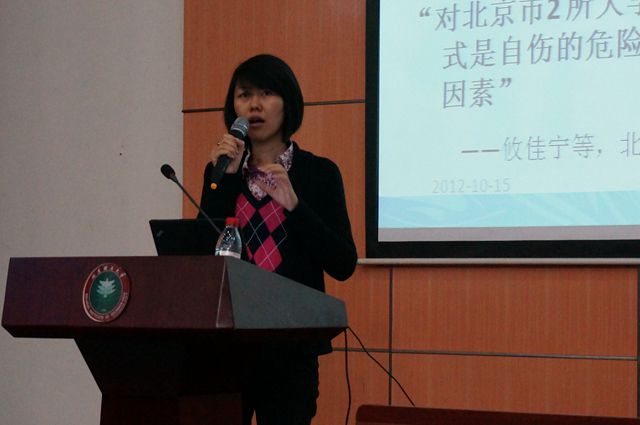 随后,心理健康教育与咨询中心副主任李旭珊做主题报告。李旭珊以近年北京高校危机事件频发的现象作为切入点,分别就大学生心理健康的整体状况、我校近年学生心理危机事件回顾、大学生心理问题识别与应对、学校心理工作体系、教师自我保健等内容进行了全面而细致的阐述与讲解。