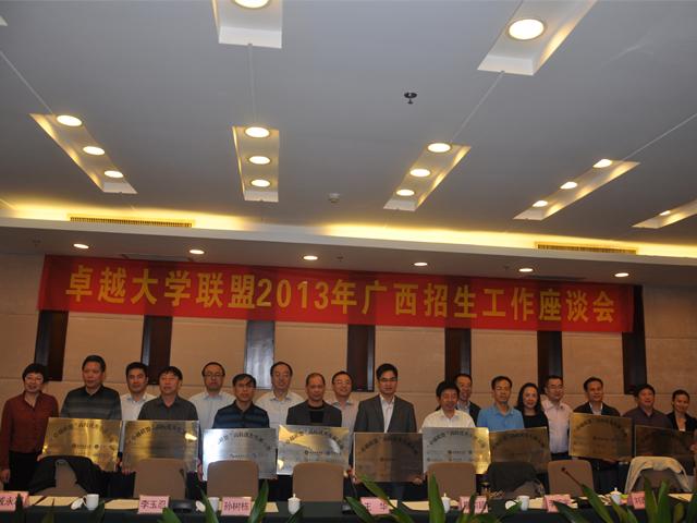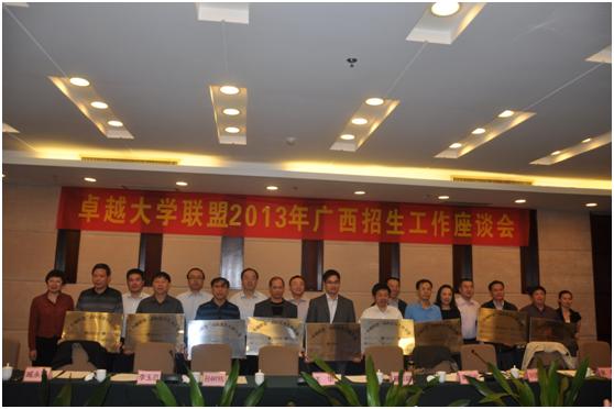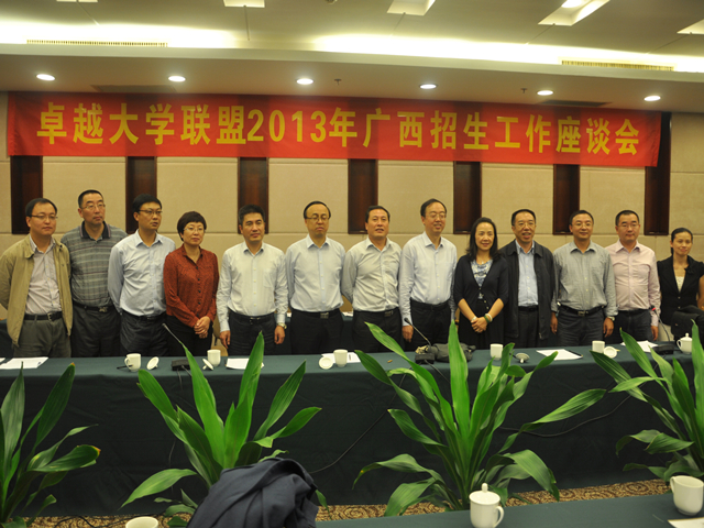 2013年10月18日,卓越大学联盟2013年广西招生工作座谈会在广西南宁召开。九所高校招办负责人,广西招生考试院负责人,南宁市第二中学、南宁市第三中学、柳州高级中学、武鸣高中、柳州铁路第一中学等十三所重点中学校长出席会议。我校招生就业工作处处长、招生办公室主任李振键,副处长张东和招生办公室副主任宋翔参加会议。
