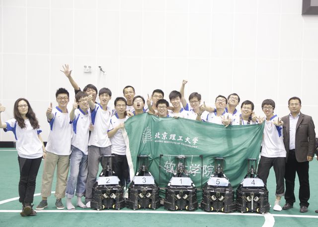 金年会jinnianhuicomRobit队队员由来自软件学院、宇航学院、机电学院、电子信息学院和设计艺术学院的15位研究生、本科生组成。小组赛第一轮与国内赛三冠王国防科技大学(NuBot)、初次参赛的常熟理工分在一组,以一平一胜的战绩顺利进入第二轮。经过一轮比赛的历练,队员们逐渐进入状态,机器人也越战越勇,先后以6:1、4:0、1:0的比分战胜了南北联队、国防科技大学以及北京信息科技大学,以总积分第一的成绩成功进入四强。在四强淘汰赛上,北理工机器人已经势不可挡,以7:2的大比分战胜了上届国内赛冠军北京工业大学,与今年机器人足球世界杯中型组项目冠军得主北京信息科技大学(Water)会师决赛。决赛精彩纷呈,双方都拿出自己的看家本领。上半场北京信息科技大学(Water)进攻凶猛,频繁射门,我方守门员表现神勇,多次扑出了对方颇具威胁的打门,我方上半场结束暂时0:1落后。半场休息时段,我方队员果断做出调整,加强了进攻,调整了防守站位,下半场进入我方的节奏。守门员延续了上半场神勇的表现,我方球门固若金汤,下半场对方未进一球。我方进攻回暖,发球,接球,晃开对方球员,转身打门,一系列动作一气呵成,前锋表现抢眼,上演帽子戏法,连入三球。最终全场比赛以3:1比分结束,我方成功击败北京信息科技大学(Water),打破了其不可战胜的神话。