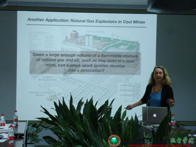 在报告会上,Elaine S Oran院士结合其团队的研究工作,就大系统燃烧极限、火焰加速机理、爆燃到爆轰的突变(DDT)和超新星DDT等问题的研究进展进行了详细的阐述。报告引起了师生们的强烈关注和浓厚兴趣,大家就关心的内容进行了热烈的交流和探讨。