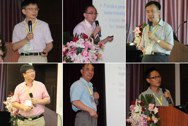 此次研讨会共为与会人员奉献了10场精彩纷呈的学术报告。美国纽约大学Prof. Zhong-Ping Jiang对非线性多智能体系统输出反馈控制问题进行了深入浅出的介绍。中科院数学与系统科学研究院程代展研究员详细介绍了Potential博弈的理论与方法及其在多智能体系统中的应用。中科院数学与系统科学研究院张纪峰研究员介绍了基于量化数据的多智能体分布式一致性问题的最新研究进展。新加坡国立大学Prof. Ben M. Chen用丰富的视频资料和幽默的语言向与会者介绍了他的研究小组在无GPS情况下UAV系统的导航与控制方面的最新研究成果。香港城市大学Prof. Gang (Gary) Feng介绍了其在异构线性多智能体系统的输出一致性方面的最新研究进展。新加坡南洋理工大学Prof. Lihua Xie介绍了多智能体系统分布式约束最优控制的理论方法及其应用。中科院数学与系统科学研究院洪奕光研究员介绍了其在基于内模的分布式控制与优化领域的最新研究成果。美国弗吉尼亚大学Prof. Zongli Lin细致地介绍了存在执行器位置、速度饱和情况下多智能体系统的半全局领航-跟随一致性问题的最新研究成果。香港中文大学Prof. Jie Huang详细介绍了基于分布式非线性观测器与自适应控制的非线性多智能体领航-跟随同步问题的研究框架。最后,此次研讨会的协主席Prof. Wei Ren详细地介绍了欧拉-拉格朗日系统的分布式协同控制方面的最新研究进展。
