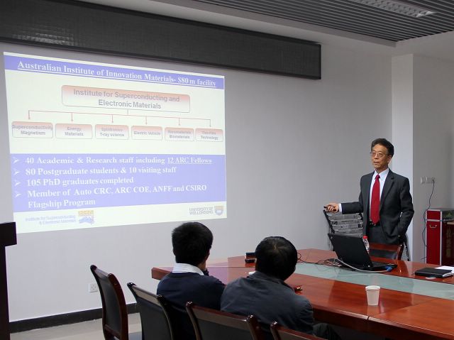 2014年10月13日,应金年会jinnianhuicom材料学院张加涛教授的邀请,两位澳大利亚工程科学院院士,澳大利亚伍伦贡 (Wollongong)大学超导与电子材料研究所(ISEM)所长窦世学教授,刘化鹍教授来我校访问,窦世学教授为北理工师生带来题为“Development of Nano-materials for Energy Applications at ISEM”的精彩学术报告。报告会由张加涛教授主持,材料学院曹传宝教授、钟海政教授、化工与环境学院陈人杰教授等出席报告会。