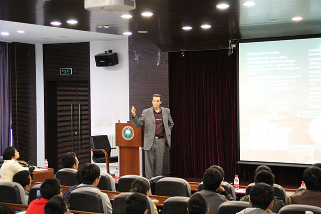 在访问期间内,Belahcen教授针对电机多场耦合分析、电磁场非线性磁滞建模与数值计算、磁致伸缩与磁致弹性作动器等研究领域做了多次学术报告,详细介绍了电机磁场/应力场/温度场耦合分析、交流电机时域周期动态建模与辩识、电磁场磁滞非线性建模与损耗分析、磁致伸缩与磁致弹性执行器分析与设计等方面的发展现状和研究成果。Belahcen教授的报告学术气氛浓厚,大大开拓了与会师生的视野,引起了师生的广泛兴趣和共鸣,与会师生深感受益。