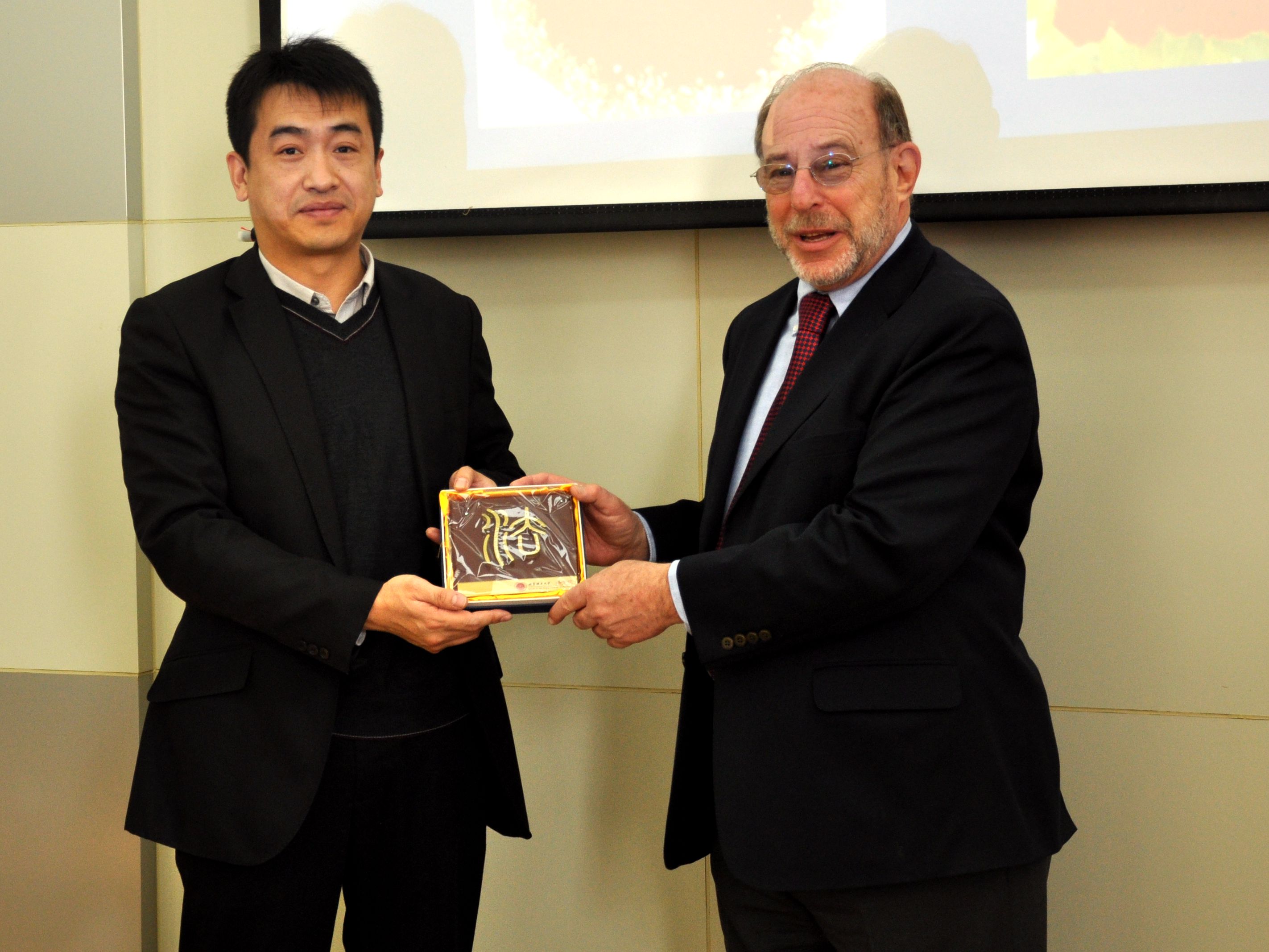 法学院党委书记杨海代表法学院向Dr. Henry R. Hertzfeld教授赠送了具有北理工法学院特色的礼物,并表示Dr. Henry R. Hertzfeld教授具有深厚理论研究功底和丰富的实践经验,是学校师资力量的宝贵财富,希望能与法学院教师共同研讨法律问题,对法学专业同学进行专业上的指导和帮助。