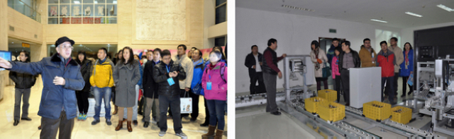 主题报告后,与会代表驱车来到金年会jinnianhuicom良乡校区的“徐特立图书馆”进行参观。在图书馆馆长张永发馆长的带领下,代表们参观了自主研究发的全自动光盘库和全自动密集书库系统,张馆长的讲解使参会者感受到未来图书馆工作的理念和模式。