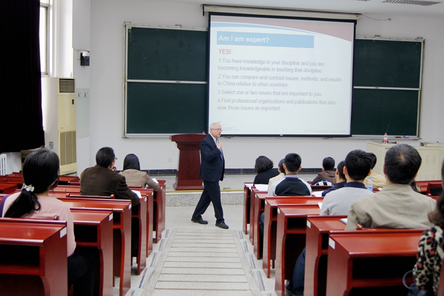 2015年424日下午,由教学促进与教师发展中心和国际交流合作处联合主办的北理工教师发展第124期活动在中心教学楼407举行。主讲人Keith J, Roberts博士是匹兹堡大学教育国际研究学院高级研究员,并任TotalEdit.com公司副主席。Roberts博士先后做了题为“Academic Writing: Publish to Flourish”“The Importance of Academic Publishing”的报告,国际交流合作处副处长高珊主持了本次活动,来自我校管理学院、机电学院、材料学院、外国语学院、数学学院、生命学院等院系的近20名师生参与了活动。