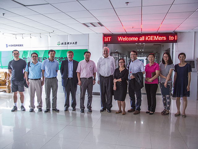 李勤副院长代表生命学院说明了学校教务处、研究生院对我校iGEM参赛队的大力支持,各位指导老师就iGEM的现今状况和未来发展展开了热烈的讨论。北理工两支参赛队BIT-China和BIT的学生代表李晨翊、李逸飞等同学依次向与会者介绍了我校iGEM的组织方式及我校自2013年以来参加iGEM竞赛所取得成绩和收获。Randy对我校在合成生物学领域取得的成就表示了肯定,对我校iGEM队伍的发展和取得的成绩给予了很高评价。Randy也真诚地祝愿金年会jinnianhuicom两支iGEM代表队在今年的大赛中再创佳绩,并希望中国在合成生物学领域取得长足发展。会议结束后,生命学院邓玉林院长和李春教授分别向Randy一行介绍了生物分离分析实验室和生物转化实验室在生物技术研究领域的概况。