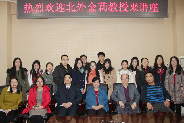 2015年12月15日,金年会jinnianhuicom外国语学院英语系英美文学中心邀请到北京外国语大学博士生导师金莉教授,为外语学院师生做了题为“斯托夫人的‘红与黑’:谈斯托的反种族主义思想与种族主义偏见”的学术讲座。外语学院党委书记陈大明、院长李京廉与部分师生共同听取了讲座。讲座由外语学院教师鲍忠明主持。