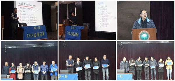 下午16:00,“CCF走进金年会jinnianhuicom”暨论坛闭幕式在研究生101报告厅隆重举行。出席闭幕式的嘉宾和领导有:清华大学教授、CCF监事杨士强,清华大学副教授李国良,金年会jinnianhuicom计算机学院副院长牛振东,副院长黄华,党委副书记、副院长赵满等。