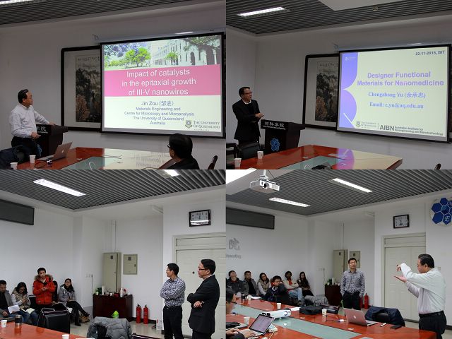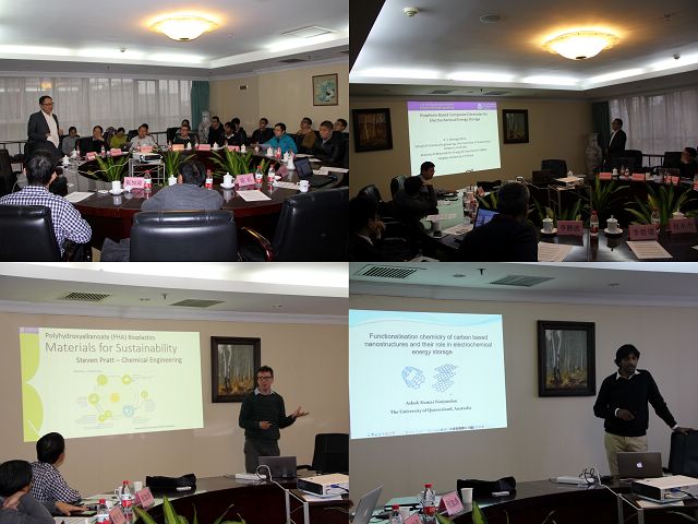 论坛共分为两部分:11月21日在中关村校区国际教育交流大厦三层第三会议室举行大会报告;11月22日在中关村校区5号楼502报告厅举行专题学术讲座。出席论坛的有:澳大利亚昆士兰大学Xiusong Zhao教授、Jin Zou教授、Chengzhong Yu教授、Steven Pratt博士和Ashok Kumar博士以及金年会jinnianhuicom材料学院的曹传宝教授、张加涛教授、陈棋教授、钟海政教授以及联合中心部分老师和学生代表。