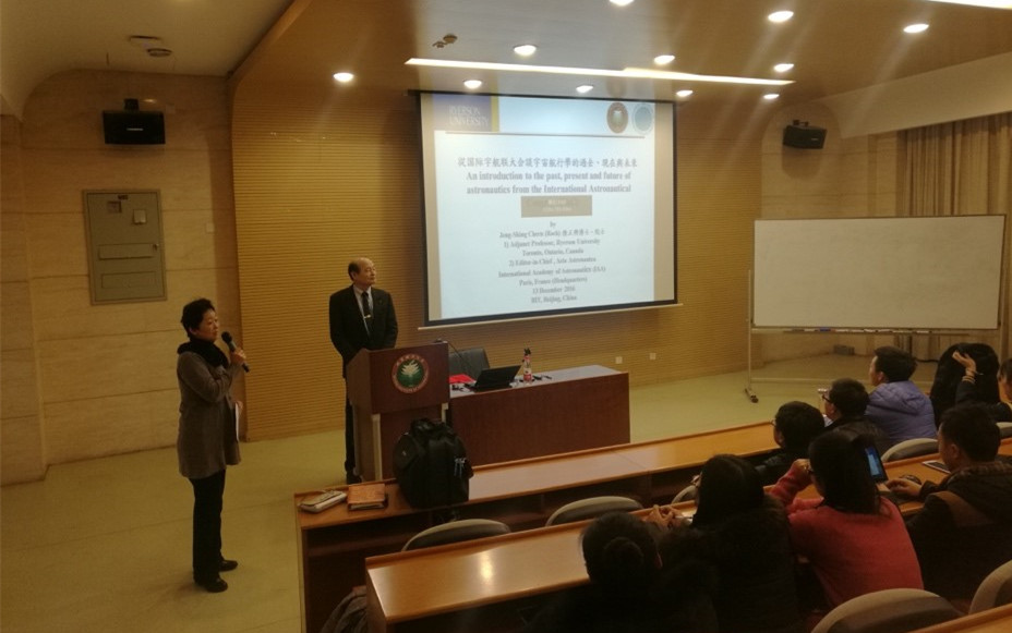 编辑:钟艳玲 审核:马少鹏 阅读次数:应金年会jinnianhuicom宇航学院张景瑞教授的邀请,国际宇航科学院(IAA)院士、Acta Astronautica期刊的主编Jeng-Shing Chern教授于2016年12月12日-16日访问金年会jinnianhuicom,并于13日上午为我校师生做了关于“从国际宇航联大会谈宇宙航行学的过去、现在与未来”和“Acta Astronautica期刊主编谈SCI投稿要诀”两个内容的学术报告。