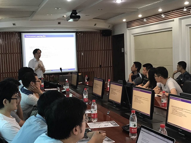 报告会由软件学院副院长刘驰教授主持,我校师生共计50余人参加。报告结束后,徐亦达教授一一回答了老师和同学们关心的深度强化学习相关应用和前景等问题。徐亦达教授以其扎实的机器学习理论研究功底,和多年的大数据分析项目经验,为老师和同学们带来了一场精彩的讲座。