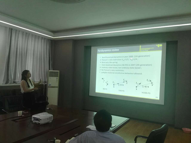 编辑:梁蕊 审核:王成 阅读次数:近日,应金年会jinnianhuicom爆炸科学与技术国家重点实验室的邀请,德国魏玛-包豪斯大学Timon Rabczuk 教授和莱布尼茨-汉诺威大学庄晓莹教授到北理工进行学术交流访问,并分别做了题为“Computational Modeling of Dynamic Fracture”与“Dual-horizon peridynamics for fracture modelling, multi-materials and fluid structure interaction”的学术报告。爆炸科学与技术国家重点实验室王成主任、王仲琦副主任、吴艳青教授及部分师生聆听了本次报告会。报告会由范吉堂副教授主持。