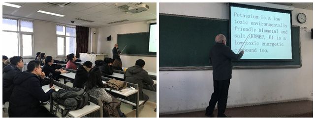编辑:廖峭 审核:陈鹏万 阅读次数:2017年12月28日至2018年1月10日,应金年会jinnianhuicom机电学院副院长张建国教授的邀请,俄罗斯圣彼得堡国立理工大学Mikhail A. Ilyushin教授和Irina V. Shugalei教授到金年会jinnianhuicom进行学术交流访问。访问期间两位教授分别作题为《'Green' energetic materials for primers》《Ecological problems of creation of energetic formulations including different nano carbon forms》等六场精彩的学术报告。学术交流由张建国教授主持。