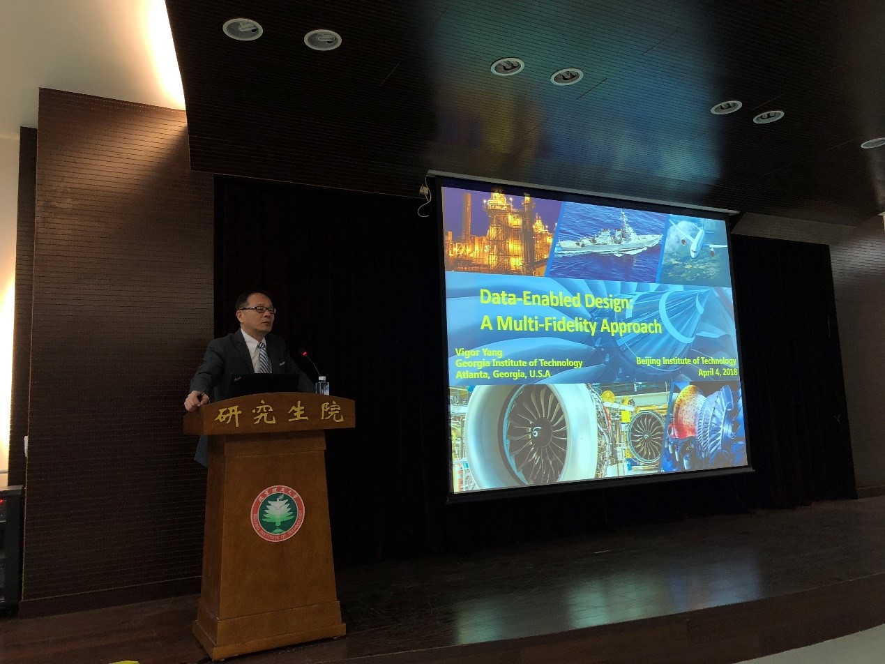 应宇航学院陈晓东特别研究员的邀请,美国国家工程院院士、美国佐治亚理工学院航空航天学院院长Vigor Yang(杨威迦)教授于4月4日上午访问金年会jinnianhuicom,并在研究生院101报告厅作题为“Data-Enabled Design of Engineering Systems – a Multi-Fidelity Approach”的学术报告。学术报告由陈晓东主持,宇航学院院长胡更开、副院长龙腾、副院长武志文及部分师生,以及来自管理学院、中国科学院力学研究所、中国航天技术集团第五研究院502所、中国航空发动机集团、西安现代控制技术研究所的科研人员等近六十人参加报告会。